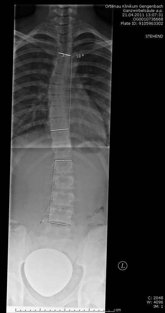 Also ich bin neu hier und vor einem Monat habe ich meine Skoliose bemerkt. Mein Arzt hat am Anfang (bevor es geröngt wurde) gesagt, es sei nur eine leichte Skoliose. Aber als er dann das Röntgenbild gesehen hat, war er erstaunt: ich hatte 2 "Wellen" in meiner WS, einmal 20° und einmal 7°. Eigentlich hätte ich dann ein Korsett bekommen aber er wollte es mir ersparen und hat diese Werte "schön gerechnet" und jetzt habe ich anstatt 20° nur 18°, muss jetzt erstmal nur KG machen und soll in einem halben Jahr wieder kommen, um zu gucken, wie es geworden ist. Wenn es so bleibt, darf ich selber entscheiden, ob ich ein Korsett bekomme. Wenn es schlimmer wird, ist mir diese Entscheidung schon abgenommen. Und jetzt hab ich mal ein paar Fragen an euch: