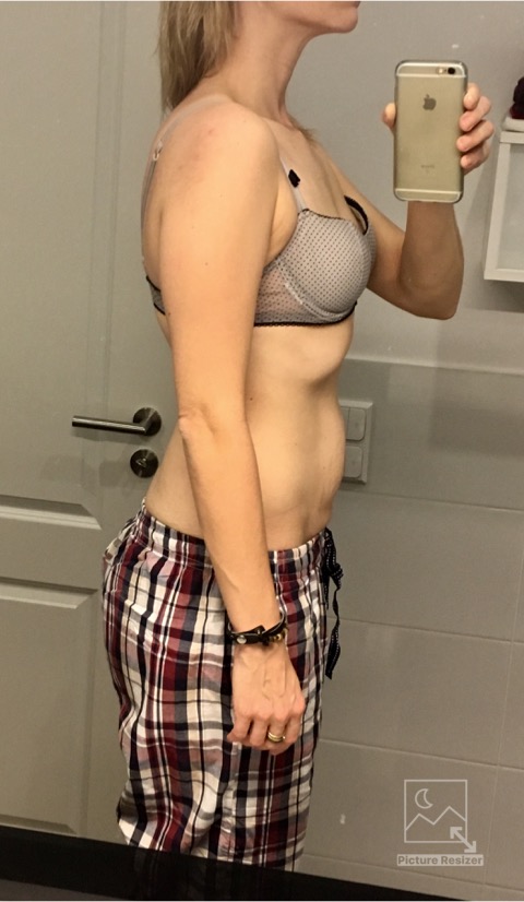 Folgend ein paar Bilder. Noch habe ich den "Babyspeck" am Bauch. Ziel ist es aber, den abzutrainieren - dann wird aber der Unterschied zu den hervorstechenden Rippen noch extremer ausfallen.