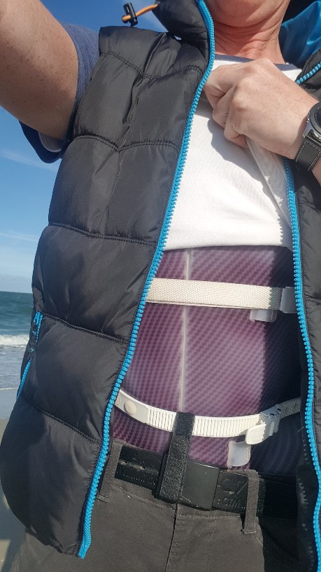 Zum Korsett... Der Techniker von Sanomed hat doch nochmal einige Änderungen vorgenommen. So wurde es etwas verkürzt, an der ein oder anderen Stelle die Kanten etwas reduziert und die bisherigen Reklinationsbügel wurden entfernt und gegen Metallbügel ausgetauscht. Insgesamt sitzt das Korsett jetzt nochmal viel straffer und die neuen Bügel schränken die Bewegung weitaus stärker ein, was aber dann zu einer noch besseren Körperhaltung führt. Vorher bin ich oft - z.B. beim Aufheben von irgendetwas - mit den Armen über die Bügel gegangen und habe somit meinen Oberkörper komplett verdreht. Durch die Polster und Pelotten an der Wirbelsäule ist auch jegliches Verrutschen z.B. im Liegen im Korsett nicht mehr möglich. Zusammenfassend sitzt es viel besser, aber eben viel fester, steifer und somit bewegungseinschränkender. Ein großer Vorteil ist aber, dass es jetzt unter der Kleidung viel unauffälliger ist.